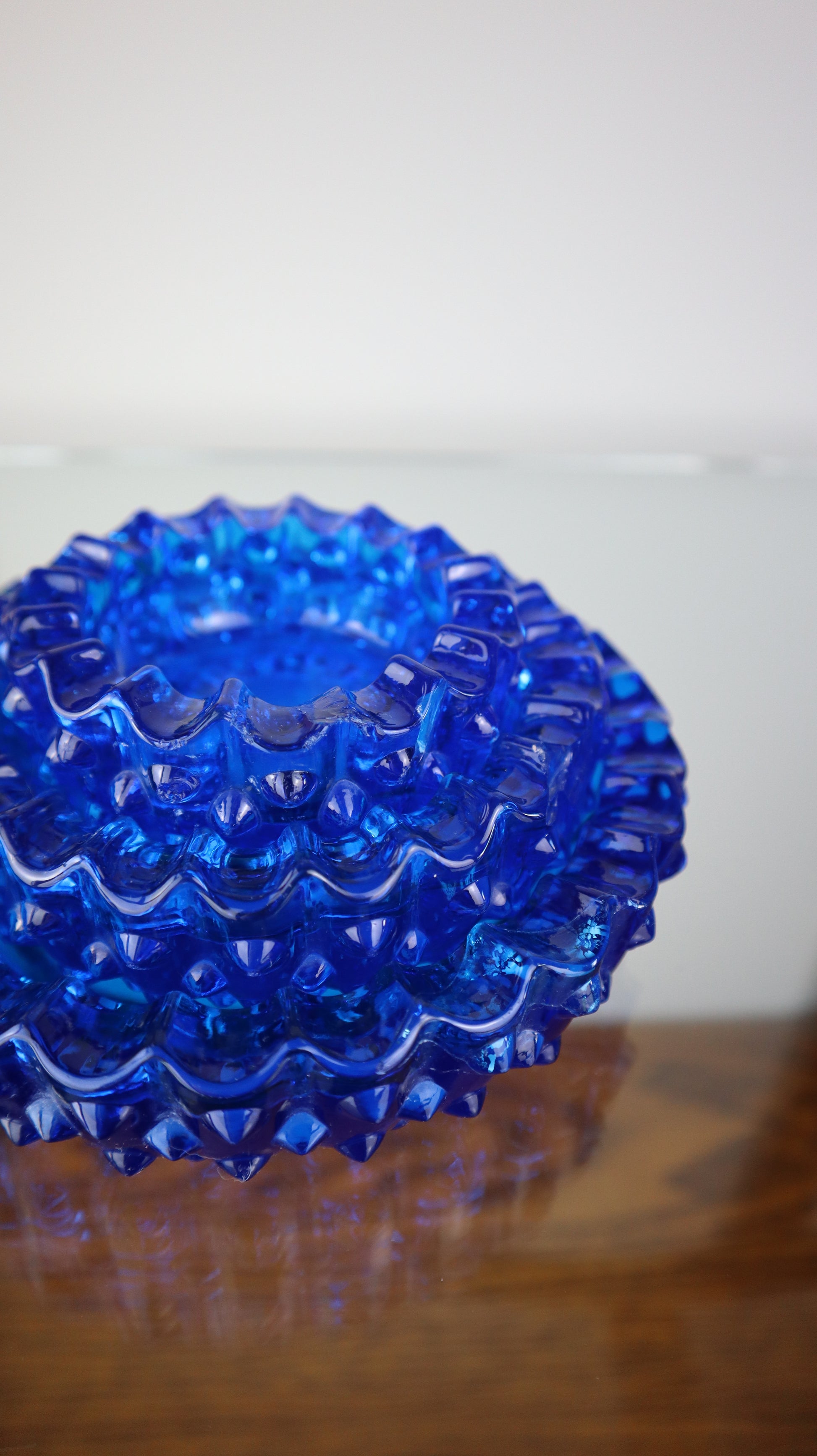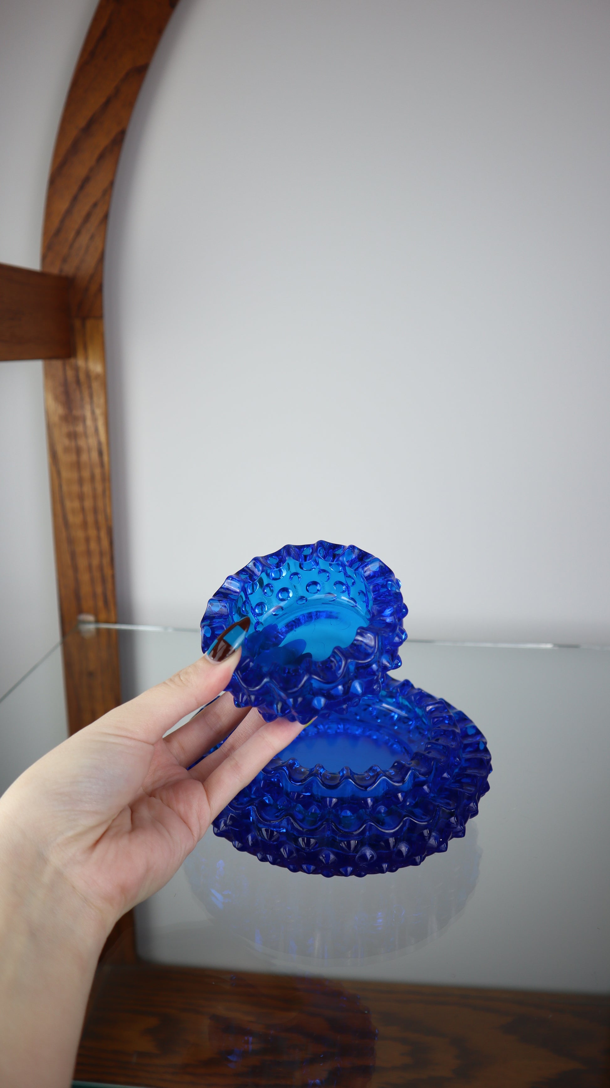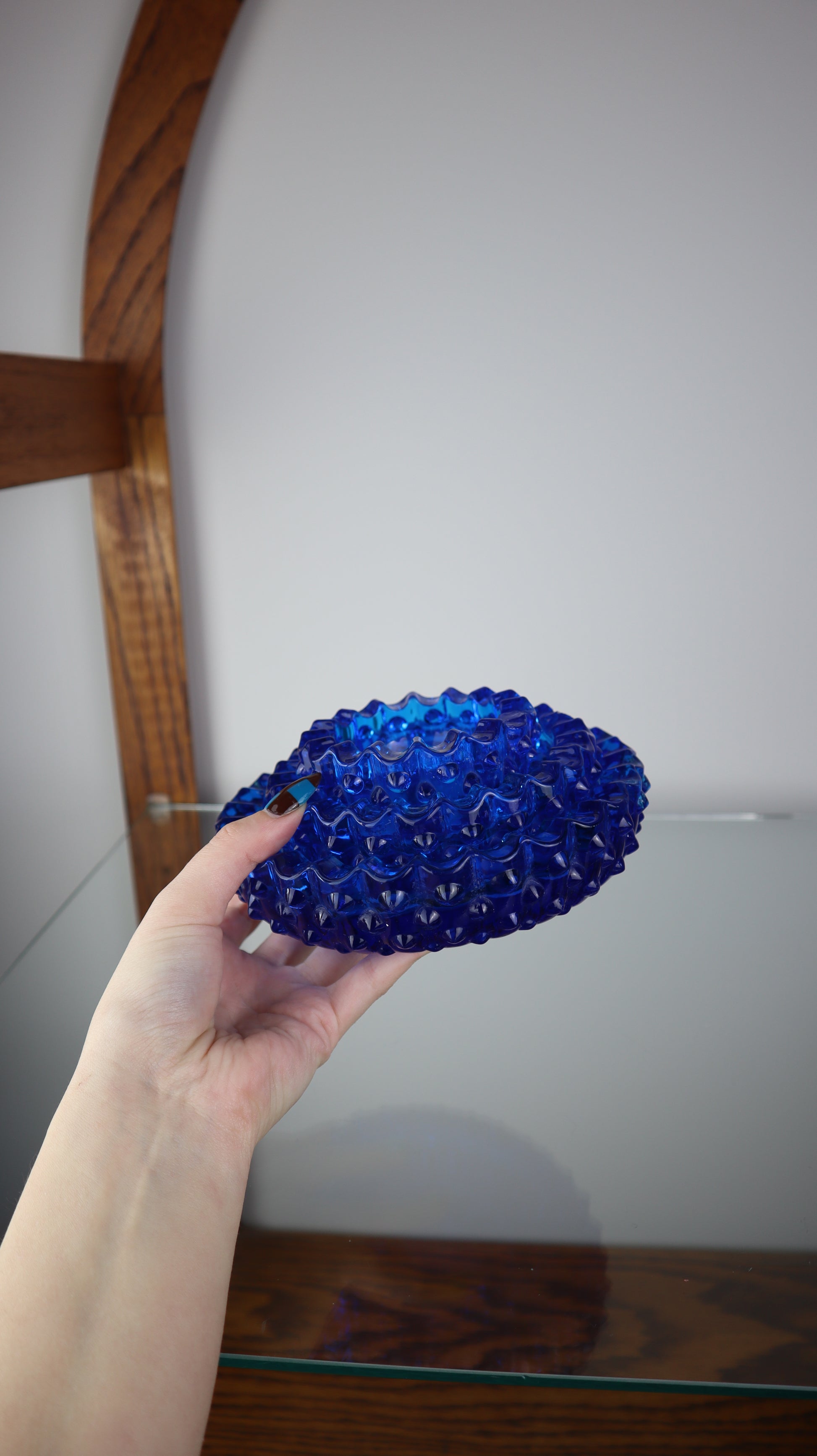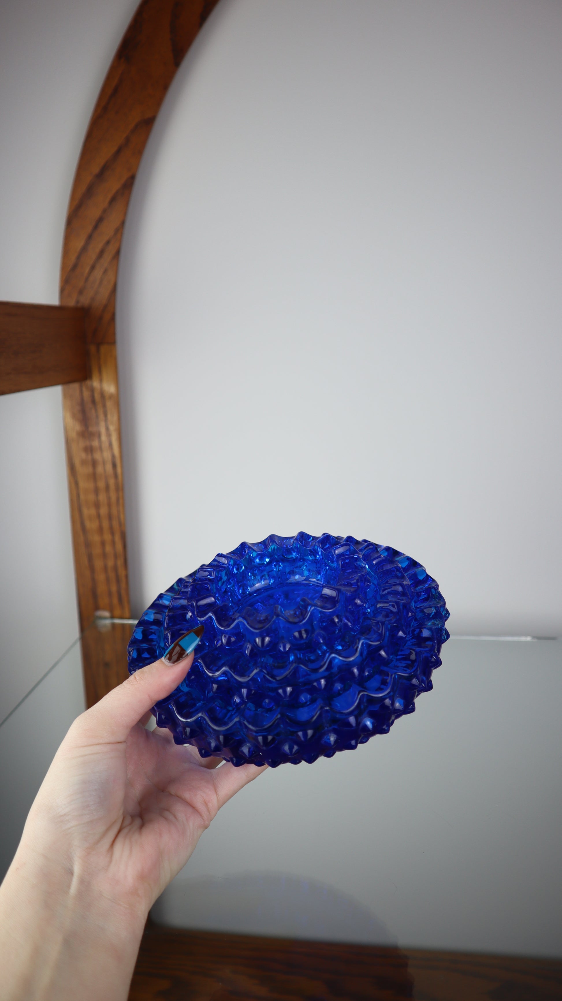 This gorgeous set of three cobalt blue hobnail is a perfect piece to add some color to your space. Minor cracks - see photos (hardly noticeable)