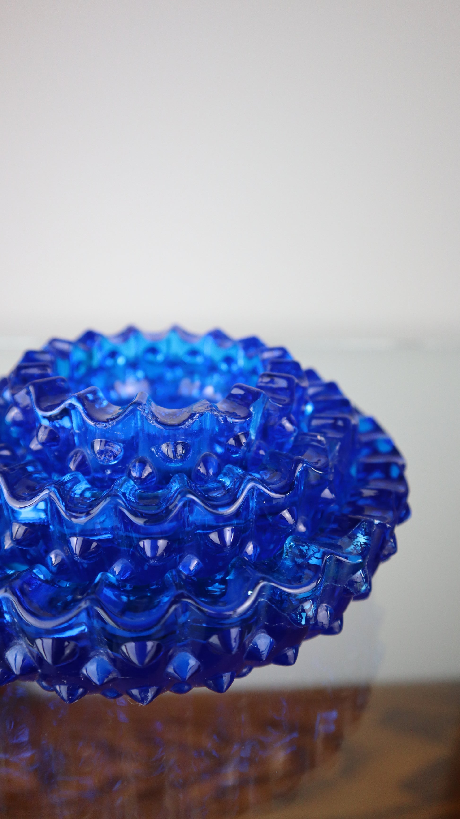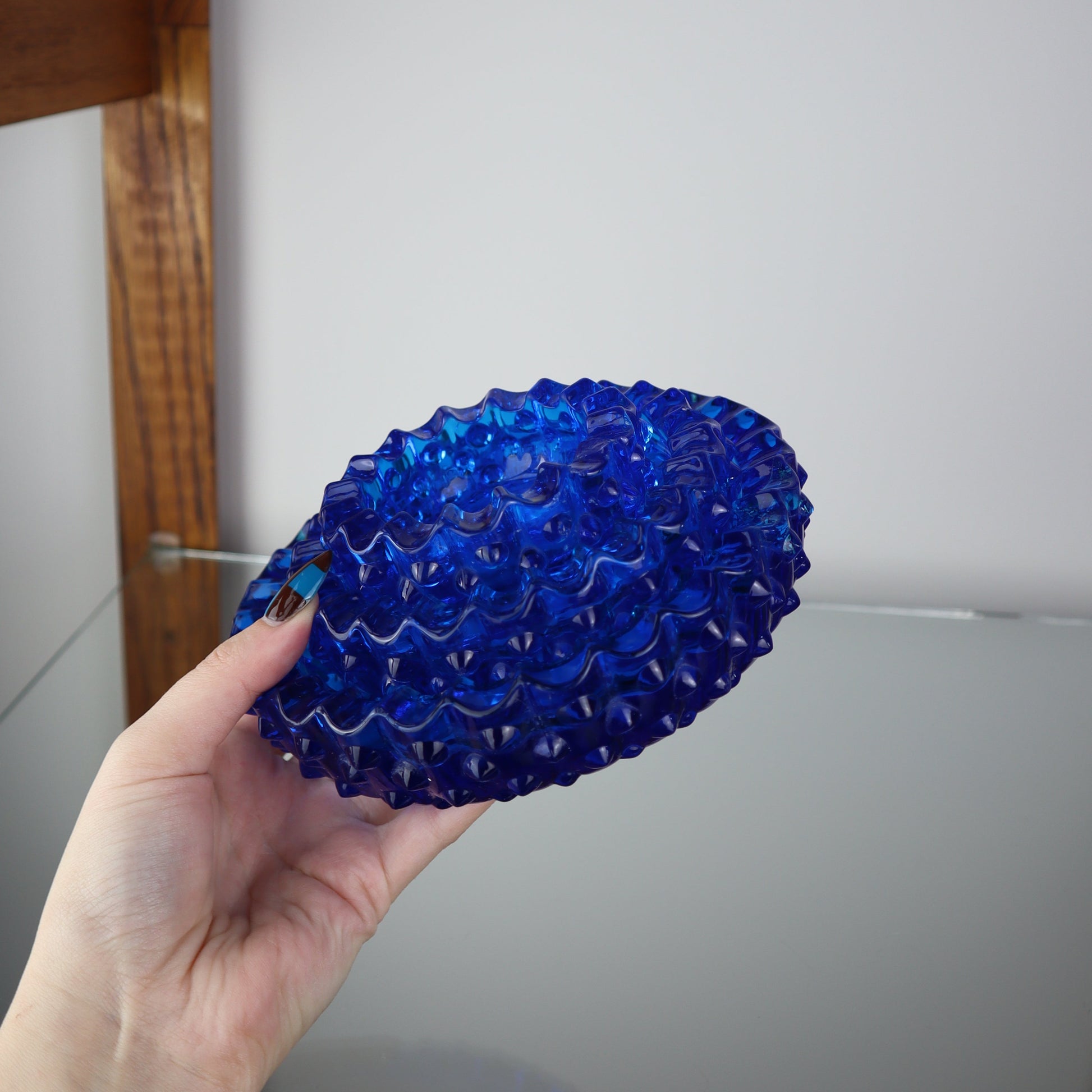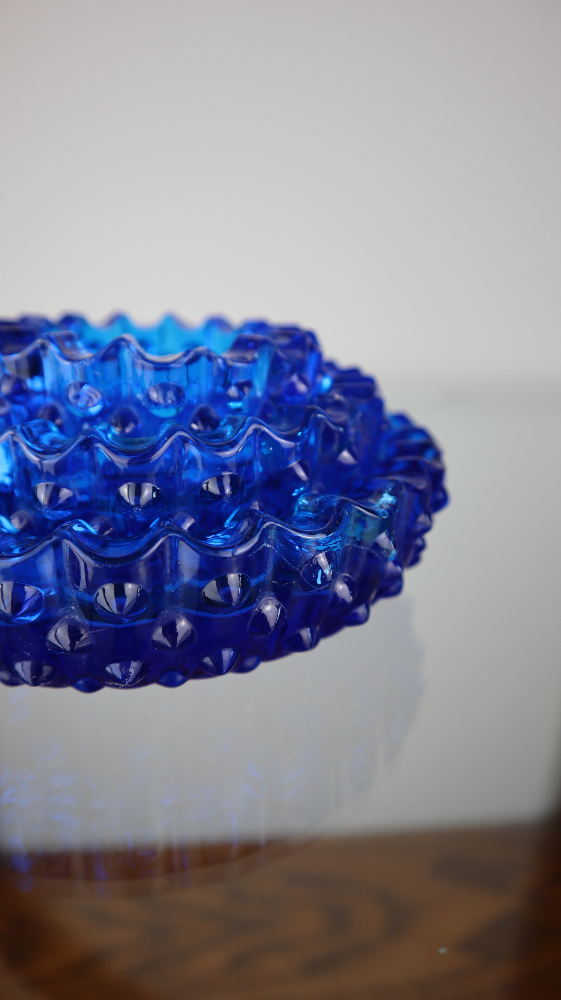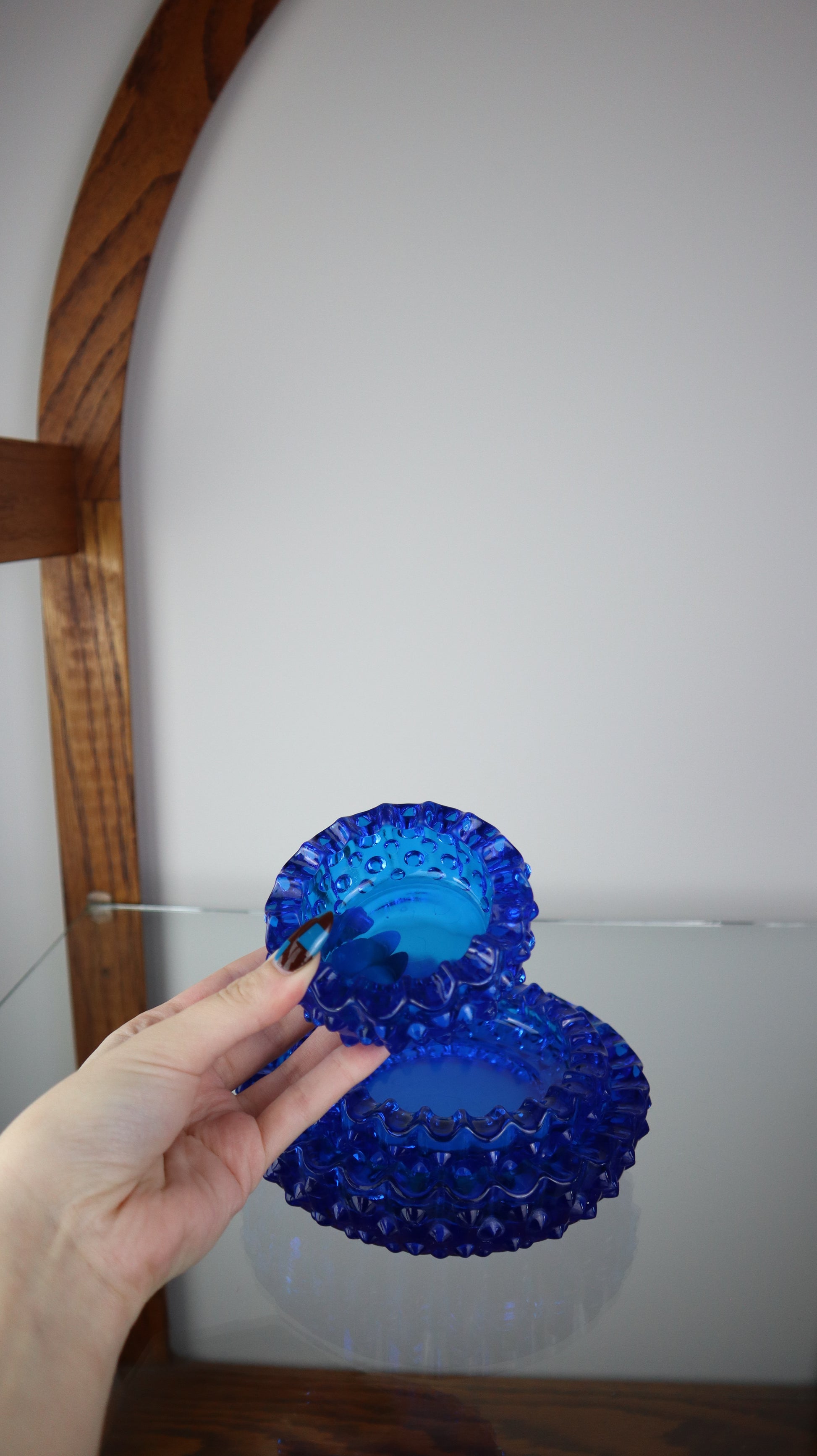 This gorgeous set of three cobalt blue hobnail is a perfect piece to add some color to your space. Minor cracks - see photos (hardly noticeable)