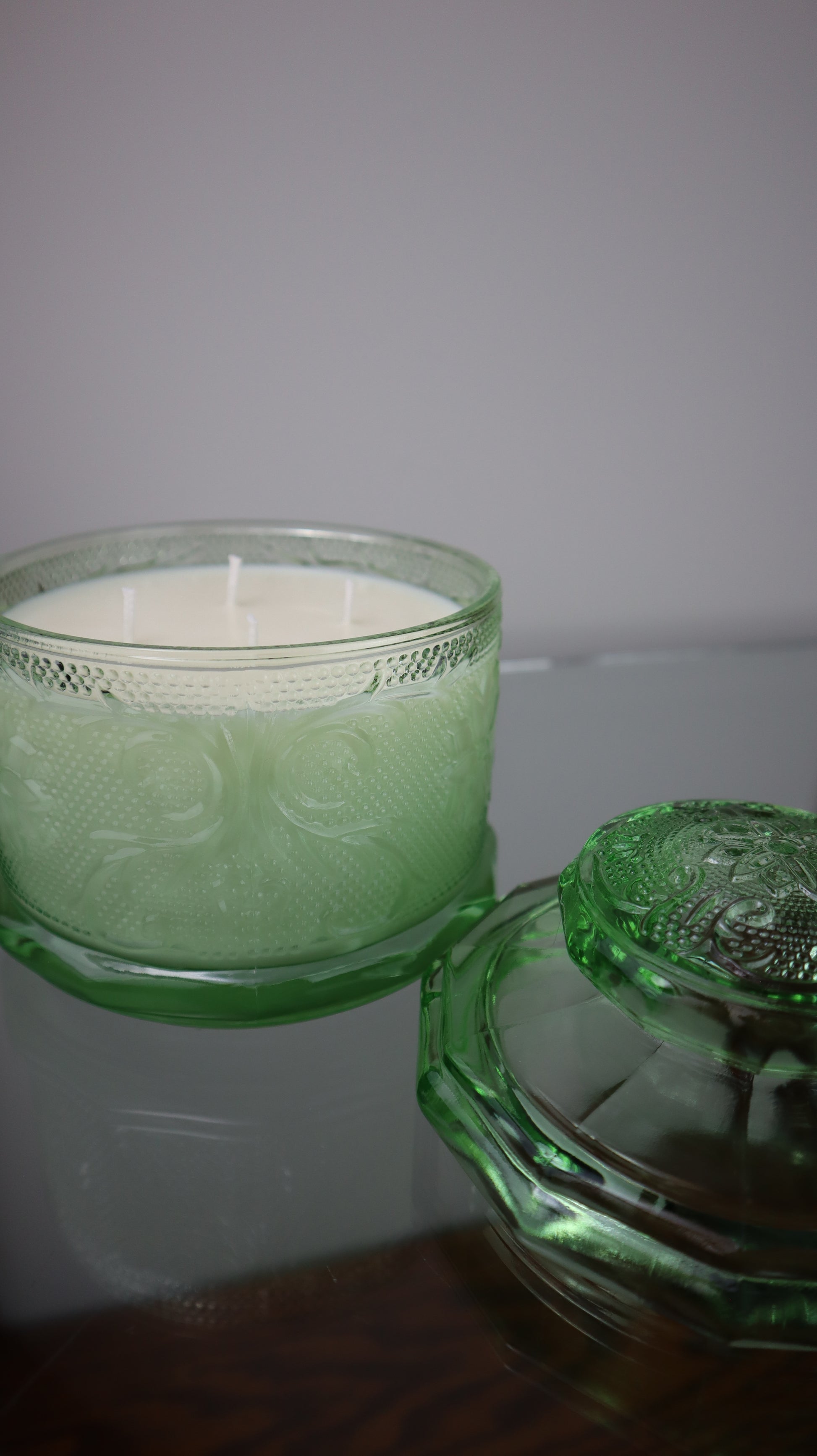 Once your candle is done burning, you can reuse your new vintage glass piece. Using vintage glassware is sustainable and eco-friendly. This is a unique way to decorate your home while making it smell so good.