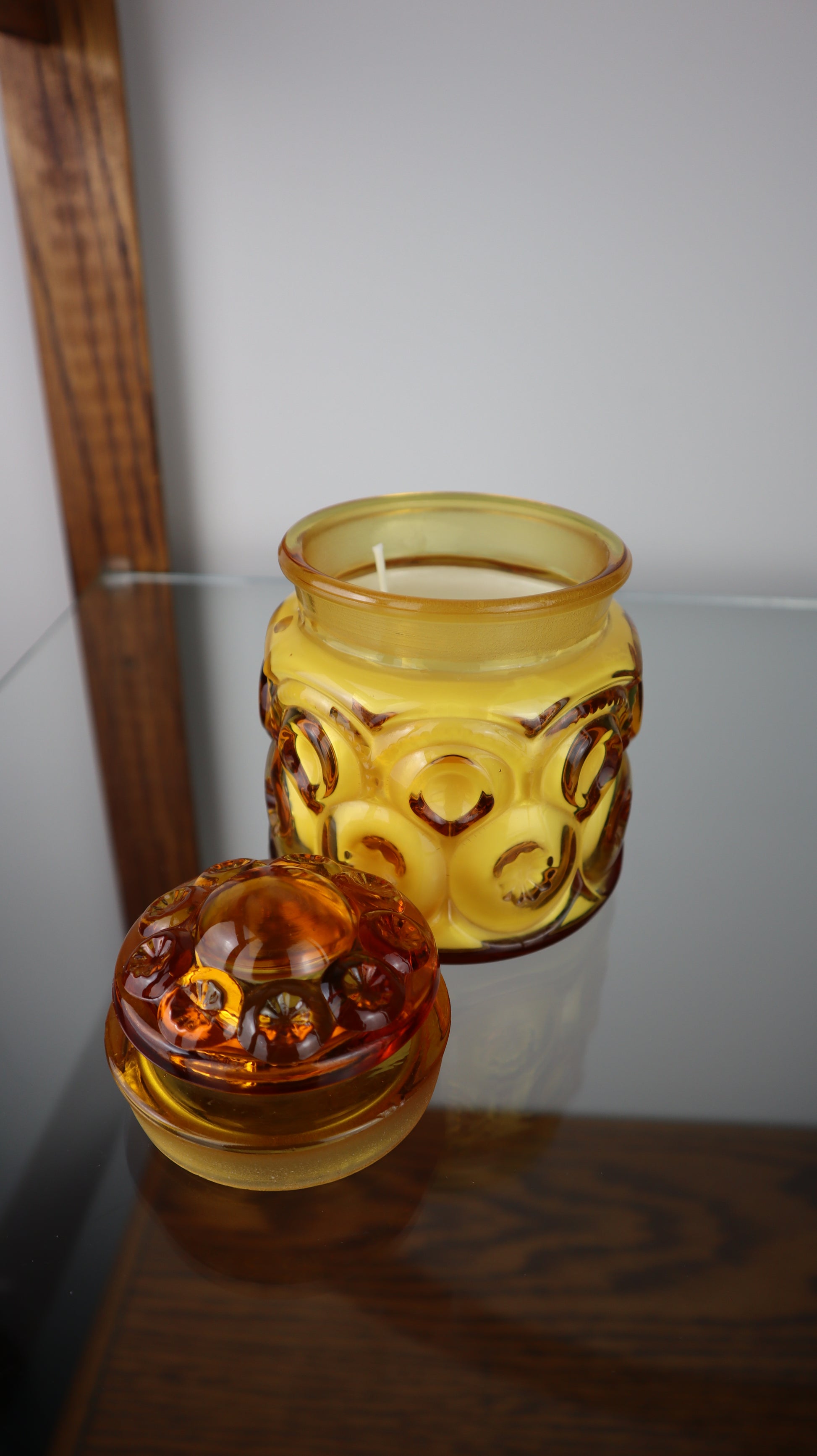Please note, as it is a vintage vessel there might be slight wear, but this adds to the nostalgic charm and is ideal for the candle enthusiast who also loves vintage décor. Each sustainable piece tells a story that you get to continue even after you've burned the candle. If you have any questions about the condition of the glass, please email us at Kushkollectivelounge@gmail.com