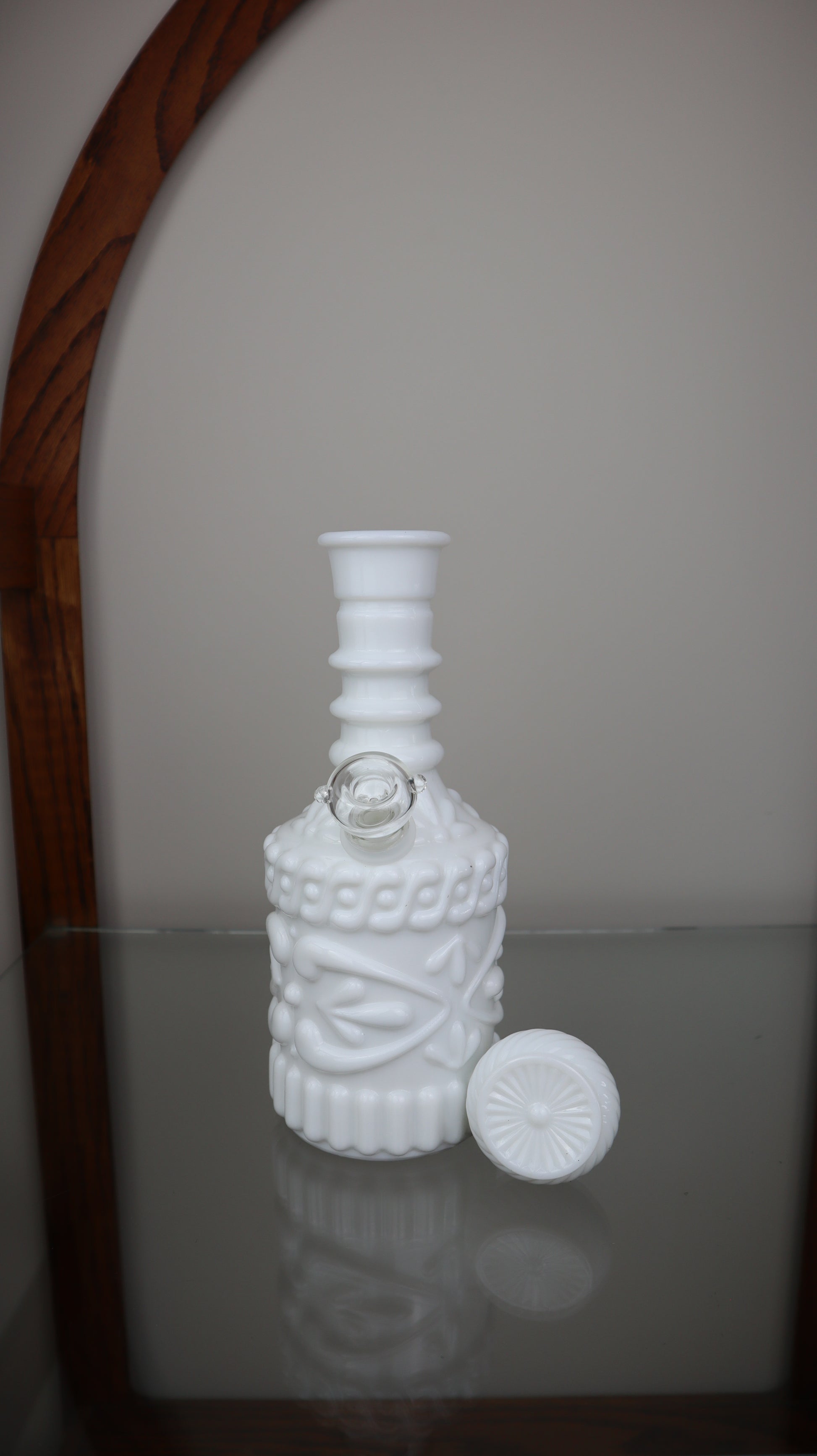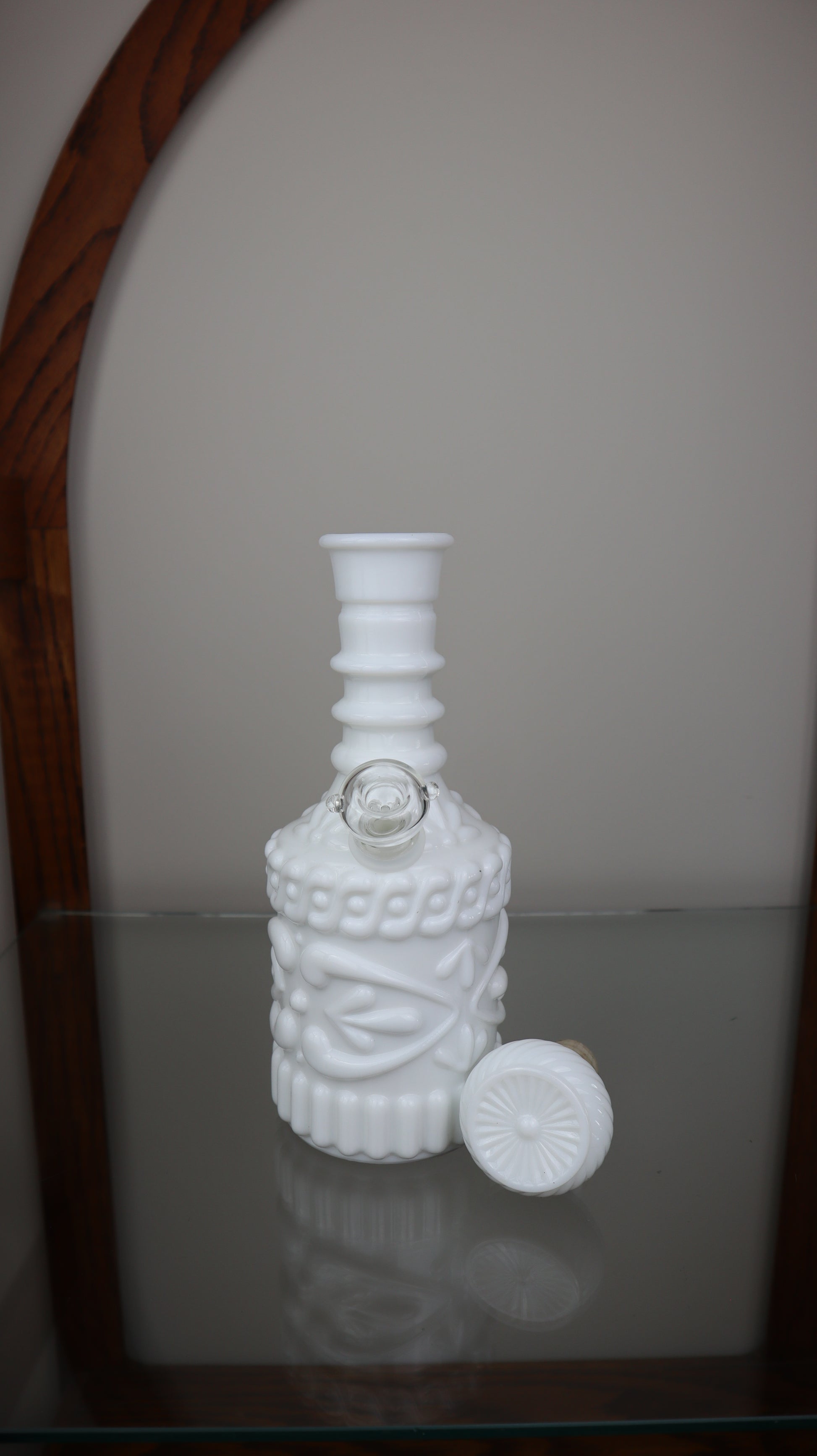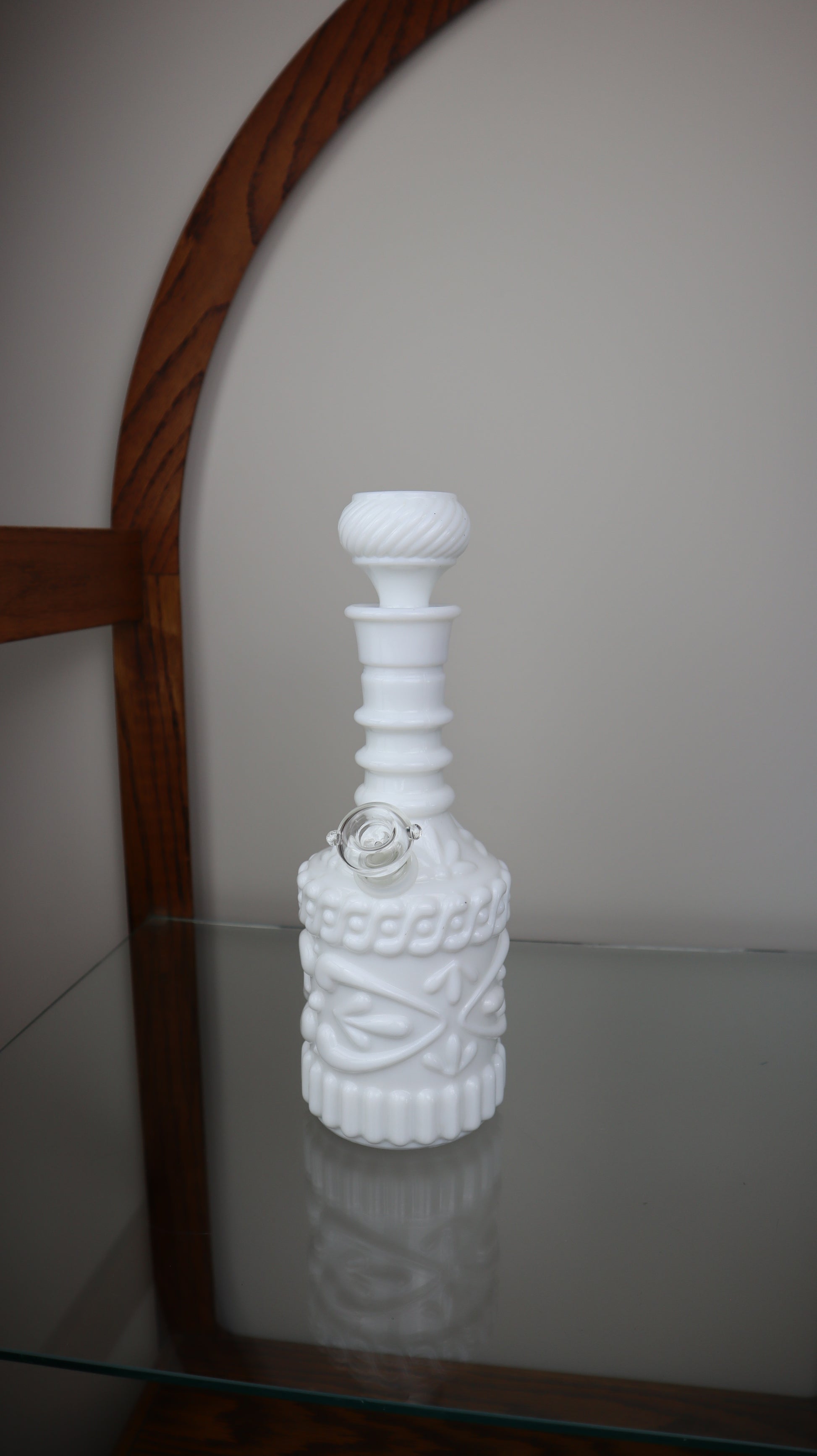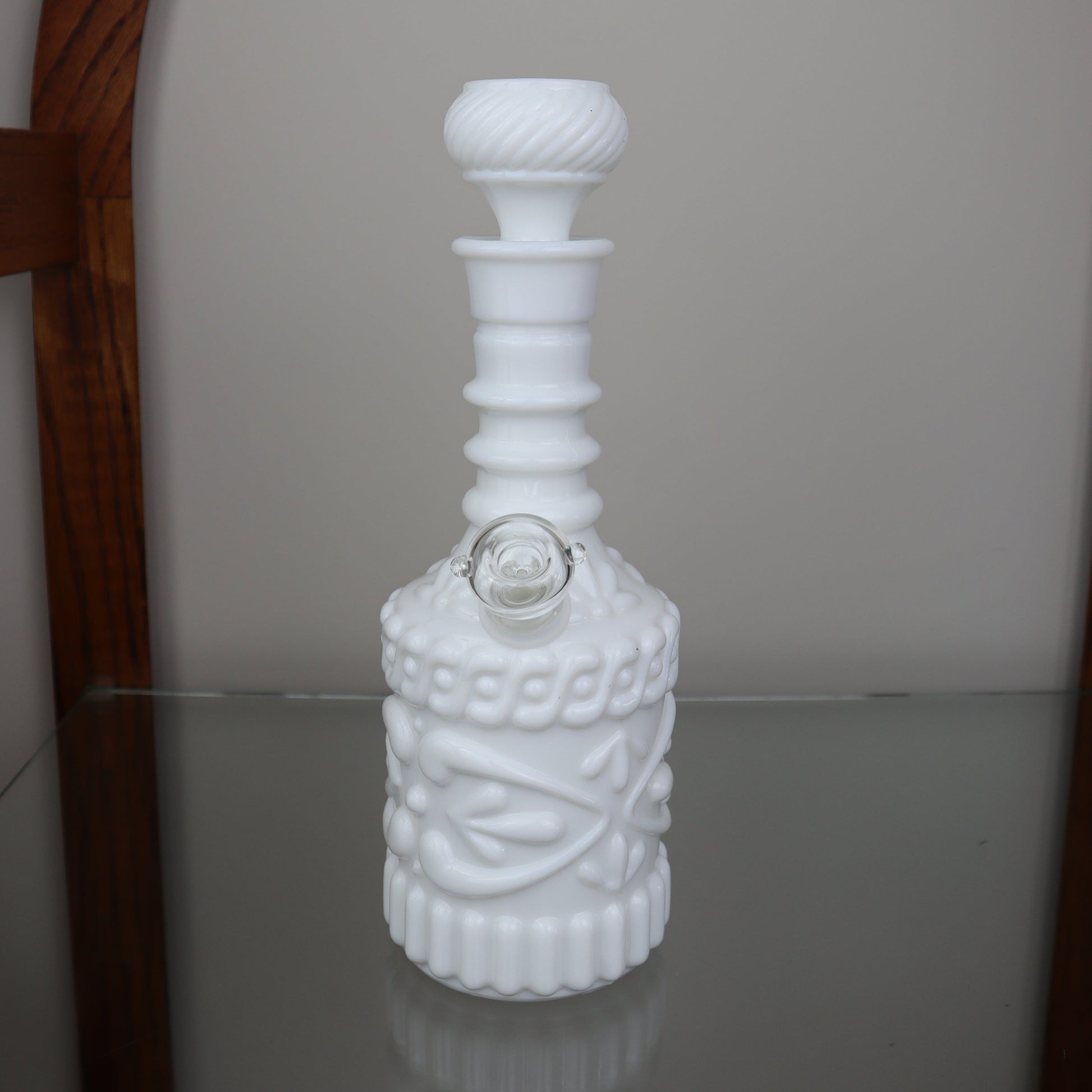 This is a gorgeous White Jim Beam decanter turned waterpipe! A very sturdy piece that provides a great hit!